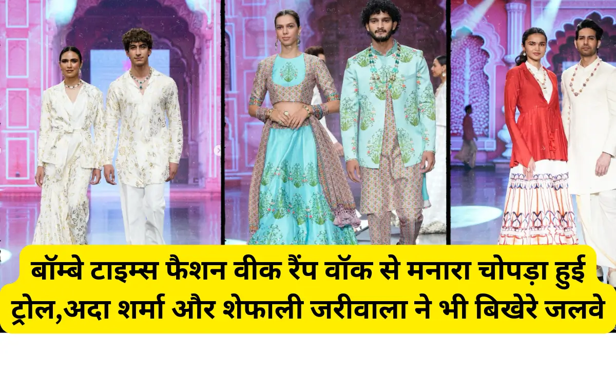 हाल ही में हुए बॉम्बे टाइम्स फैशन वीक 2025 में कई बॉलीवुड हसीनाओं ने जलवे बिखेरे जिसमें अदा खान , शेफाली जरीवाला, मनारा चोपड़ा और पलक तिवारी जैसी खूबसूरत अभिनेत्रियां शामिल थी। जहां एक तरफ कुछ अभिनेत्रियों को तारीफे मिल रही है वहीं दूसरी ओर मनारा चोपड़ा को कुछ यूजर से ट्रोलिंग का सामना करना पड़ा।आइए इस इवेंट के बारे में और गहराई से जानते है।